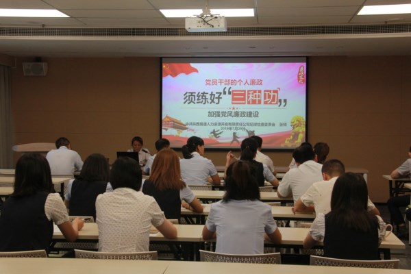 为深入开展“第二个纪律教育学习宣传月”活动,不断提高党员干部廉政意识和拒腐防变的自觉性,7月29日下午,易通人力公司纪委书记张楠紧扣“不忘初心、牢记使命”主题教育的五个方面具体目标,特别是 “清正廉洁作表率”方面,以“明纪律、知敬畏、存戒惧、守底线、作表率”为主题,围绕《党员干部个人廉政须练好“三种功”》,为公司全体党员及领导干部上了一堂生动的廉政党课。