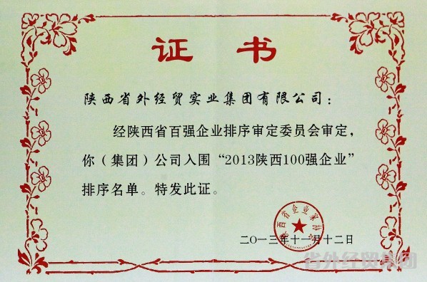 12月17日,省企业家协会发布2013年陕西省百强企业名单,我集团再次入围百强企业名单,排名较去年66名提升至58名。
