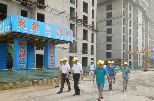 7月23日,集团公司董事长肖玉龙在集团所属汉建总总经理丁永忠等人的陪同下到汉建总西安二分公司承建的西港碧水湾地下车库和和平春天高层住宅楼两个项目部进行视察,重点检查了和平春天项目部。该项目部班子由汉建总西安二分司一支年轻精干的施工技术力量构成,项目施工中现场干净整洁,材料堆放有序,施工过程规范,现场管理人员着装统一,文明施工氛围浓郁。在听取项目部对工程质量安全和进度情况等的介绍后,肖董事长一行从楼下到楼上、从场外到场内进行了全面视察,整个视察过程肖董事长对和平春天项目及年轻的项目部班子都给予了高度评价,鼓励年轻人好好干,未来是属于年轻人的;同时,肖董事长要求项目部继续努力,狠抓质量和安全,做优质项目,为以后开拓市场提供观摩和示范样本工地。