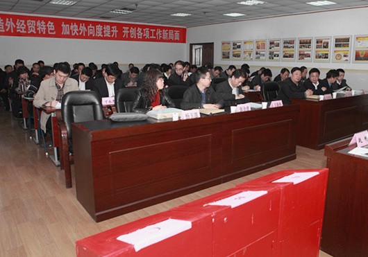 会议由考核组副组长、国资委副主任秦民生主持,国资委副书记何少华在会上作了动员讲话,集团董事长肖玉龙代表外经贸集团作了述职报告。