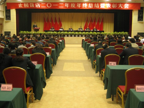 饭店党委书记、总经理刘浩川讲话指出,2012年,是止园饭店全面提升经营硬件、丰富经营内涵、提高经营水平的重要一年。饭店在省外经贸集团公司党委的领导下,深入贯彻落实科学发展观,以“标准化建设年”和四星级达标工作为重点,以实施装修改造二期工程,着力提升饭店的硬件水平为动力,以精细化管理和标准化服务为抓手,以深化内部改革,管理创新、机制创新为突破口,继续发扬艰苦奋斗,顽强拼搏的止园精神,狠抓基础管理、服务规范和市场营销,按照年初确定的奋斗目标,积极应对市场挑战,克服了装修期经营总量下降、资金困难、成本支出增加等重重压力和考验,各项工作稳步推进,完成年度各项目标和工作任务,实现了企业稳定健康发展。刘总总结和回顾了2012年的工作情况,并对认真做好2013年的各项工作,做了安排部署。一是要加强党的建设和反腐倡廉力度,为饭店经营发展提供有力保障。二是继续以提高服务为手段,一心一意做好经营工作。三是以人为本,建设和谐止园。四是改进作风,转变观念,在全饭店形成说实话、办实事、求实效的良好风气。五是以管理提升年为契机,切实提高饭店管理水平。