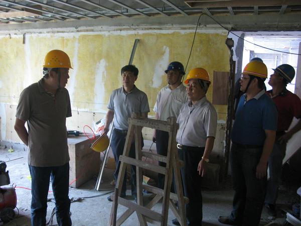 8月21日上午,集团公司总经理赵彬在饭店党委书记、总经理刘浩川及党委副书记田震林和集团经营管理部刘国强部长的陪同下检查饭店二期装修改造工程工地并指导装修改造工作。赵总首先在施工现场对工程的进展情况和存在的问题,进行了仔细地检查和询问。随后,听取了饭店领导、监理及施工单位对工程进展情况的汇报。赵总对改造的整体工作给予了肯定,要求大家再接再厉,在工期紧任务重的情况下,克服困难,辛勤工作,加强工程进度、装修质量、安全防范、现场监理等工作,确保安全文明施工,确保9月底六号楼及迎宾厅顺利竣工并投入使用。
