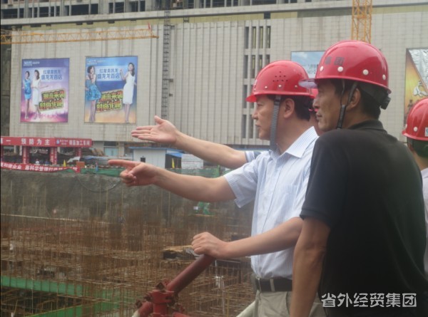 2012年7月9日下午集团公司董事长肖玉龙,在集团公司总会计师刘晏、经营管理部部长刘国强、建设三公司总经理任秀学陪同下到北城盛龙广场2#商业综合体项目检查雨季安全施工。