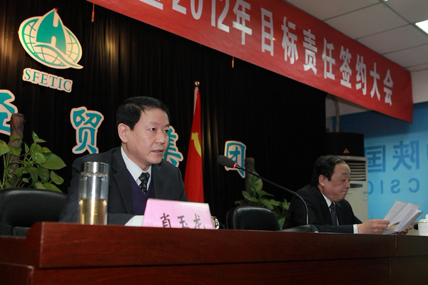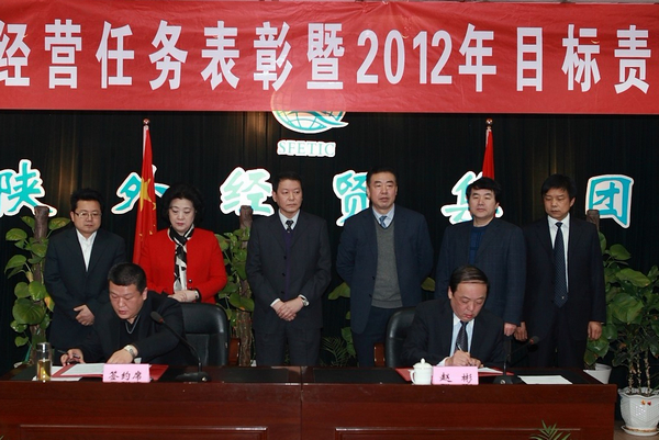 集团公司总经理赵彬首先在会上总结了集团2011年度经营工作,安排部署了2012年工作任务,并与集团公司所属20多个经营单位签订了2012年经营、管理、党风廉政目标责任书。
