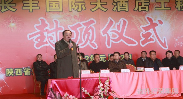 1月12日,由集团建设一公司承建的长丰国际大酒店举行了隆重的封顶仪式,集团公司总经理赵彬、总会计师刘晏出席。 长丰国际大酒店位于朱雀大街南段,地下2层,地上28层,在参建单位共同奋战437天后顺利封顶!据悉此项目是雁塔区城中村改造由商品房、住宅区转化为商业用房开发的先例,是集住宿、餐饮、休闲、娱乐、运动为一体的准星级酒店。面对时间紧、任务重集团建设一公司加大管理力度,重点抓好工程关键节点,确保工程建设如期保质保量完成。