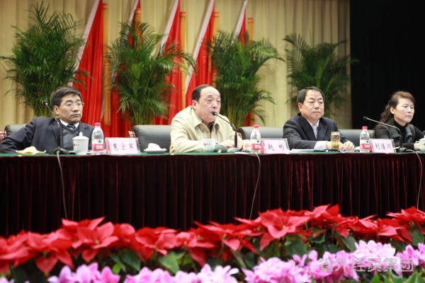 集团公司总经理赵彬在讲话中,高度肯定了饭店2011年的工作,并对饭店2012年工作提出了4点要求,一是打造强有力的领导班子;二是认真探索市场环境下经营性事业单位经营发展思路;三是全面完成2012年经营任务,特别要在效益上下功夫,围绕改革创新精神提高效益,时时关注稳定工作;四是完成好2012年饭店二期装修改造工作。