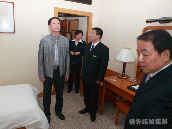 肖董事长先后对饭店6号楼客房、卫生间等硬件设施、楼层中小会议室、大礼堂会议室进行了详尽查看,在听取了饭店总经理惠宏军及党委书记刘浩川的工作汇报,集团有关职能部门负责人对饭店工作的发言后,肖董事长做了重要讲话,首先他对饭店的经营工作给予了肯定,给予饭店"班子强,路子对,力度大"九字评价,为企业的发展奠定了好的基础,同时对饭店提出了两点要求: