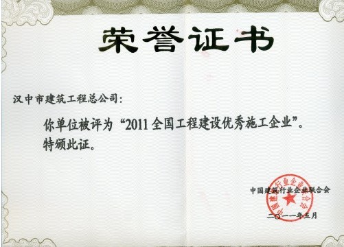 汉中市建筑工程总公司被中国建筑行业企业联合会评为“2011全国工程建设优秀施工企业”。5月27日,公司总经理丁永忠同志和副总经理罗建平同志在海南参加了2011中国工程建设/新居住时代(第6届)博鳌论坛,并参加了隆重的颁奖典礼。