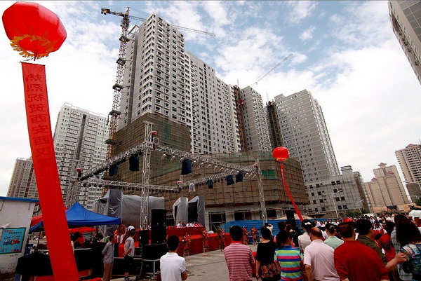 2010年6月30日上午,由我公司承建的西安市长丰园小区11号楼主体工程举行封顶仪式,集团公司副总经理李凤成、赵彬,总会计师刘晏出席,集团公司副总工程师、建设工程公司总经理刘相杉,集团公司机关部门负责人以及集团公司项目承建单位建设工程公司、项目部等人员到会参加。集团公司总会计师刘晏在仪式上代表集团公司作了发言讲话。