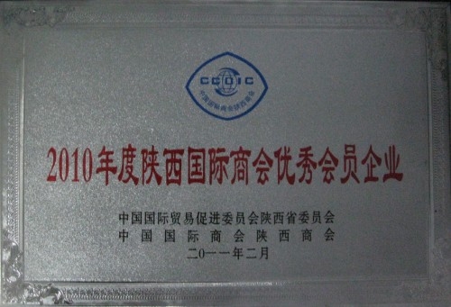 我集团公司被授予2010年度陕西国际商会优秀会员企业称号。
