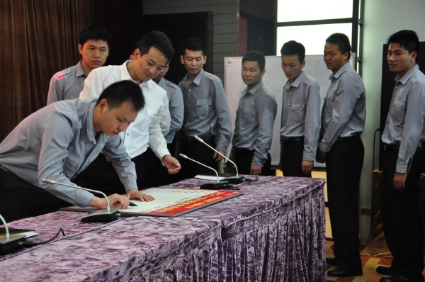 2014年9月12日,在歌声、笑声中,在各部经理带领部门员工签订优质服务承诺书的火热气氛和铿锵有力的宣誓口号声中,长安大酒店第二十一届优质服务质量月活动隆重拉开帷幕。