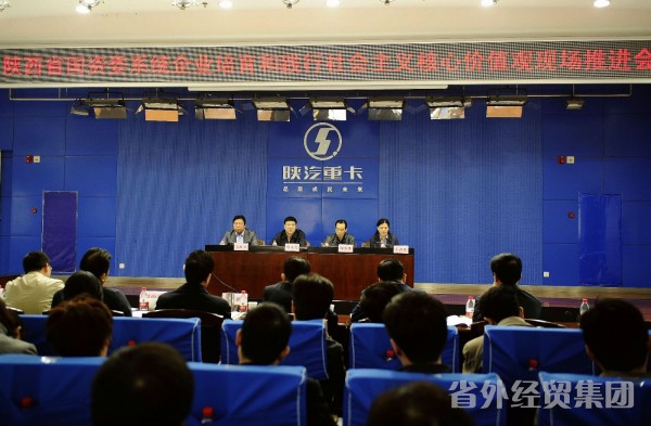 10月23日,省国资委系统企业培育和践行社会主义核心价值观现场推进会在陕汽控股集团召开,学习交流培育和践行社会主义核心价值观的好经验好做法,进一步推动系统企业社会主义核心价值观建设深入开展。省国资委党委书记孙安会出席会议并讲话,党委副书记何少华主持会议。集团公司党委副书记曹振德、党群工作部有关人员参加。
