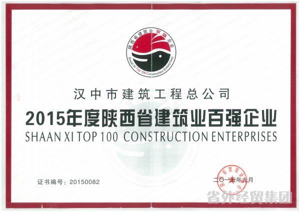 集团所属汉中市建筑工程总公司喜获“2015年度陕西省建筑业百强企业”荣誉称号