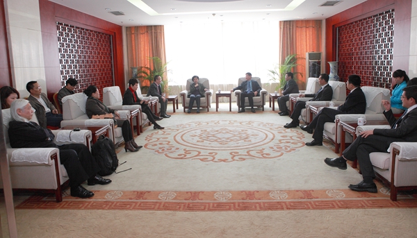 肖董事长首先代表集团公司对陕西工运学院一行的到来表示欢迎,介绍了集团的基本情况、公司的主营项目及行业优势。肖董事长表示,近年来,企业稳中求进,开拓创新,汇聚优势,在国内外劳务派遣、工程承包等方面广泛寻求战略合作,已同多个地区及校企在人才联合培养、人才交流和工程项目承包等方面开展了广泛的合作交流,取得了一定成果,此次双方借助彼此优势,在人才联合培养、高层次人才输出、外派劳务服务平台建设等方面深入合作,不仅有利于集团自主创新能力和核心竞争力等方面发挥积极作用,同时也对陕西工运学院人才培养、学习交流、推广成果等方面起到很好的促进作用。