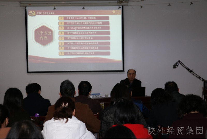 12月5日上午重点对汉中片区三家单位党员干部职工进行了党的十九大报告精神宣讲。蒙书记宣讲内容围绕十九大报告起草的过程、提出的一系列新的重要思想、重要观点、重大论断、重大举措从八个方面系统地阐述了十九大精神和习近平新时代中国特色社会主义思想的精髓和核心要义。宣讲辅导主题鲜明、重点突出、脉络清晰、通俗易懂,既有理论高度、时代广度,又有理解深度、民生温度,对于汉中片区党员干部职工深入学习领会、贯彻落实党的十九大精神,全面准确把握习近平新时代中国特色社会主义思想的精神实质和丰富内涵,进一步提升党建工作水平和党员干部职工思想政治素养,推动公司深化改革健康发展 起到重要的引领促进作用。