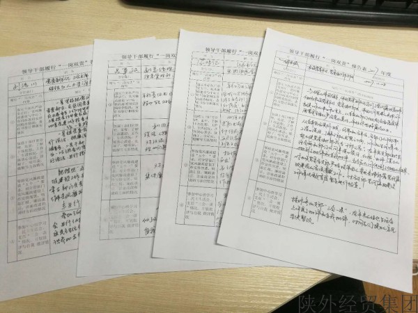 陕外经贸集团纪委于近日开展2017年领导干部“一岗双责”履职填报工作,集团中层副职以上领导结合自身工作实际,对照年初制定的目标责任分解认真进行填报,共收到35份填报表。