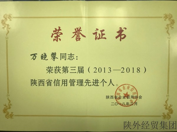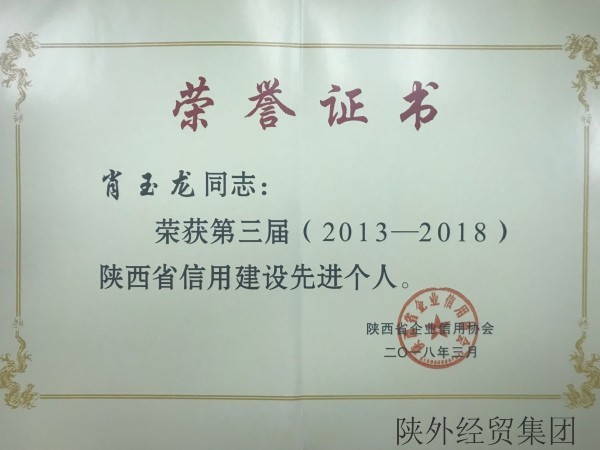 商以诚为本,业以信为基。3月28日,在华山国际酒店召开的陕西省企业信用协会年会暨2017年(第13届)陕西省诚信奖颁奖典礼上,集团公司荣获信用企业“第三届优秀会员单位”,同时集团公司党委书记、董事长肖玉龙荣获“第三届陕西省信用建设先进个人”,规划发展部万晓攀荣获“第三届陕西省信用管理先进个人”称号。