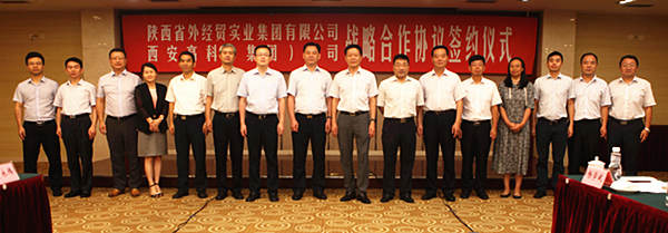 2018年8月17日,星空官方端网站登录入口与西安高科(集团)公司战略合作签约仪式在陕西省止园饭店隆重举行。陕外经贸集团党委书记、董事长肖玉龙和高科集团党委书记、董事长贾长舜带领双方领导班子成员及相关部门负责人出席了此次签约仪式。