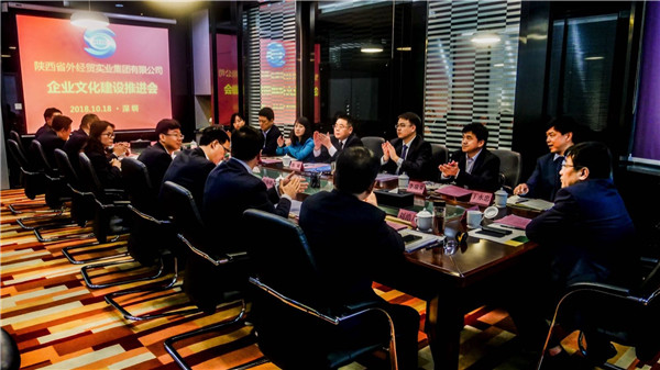 为加快陕外经贸集团企业文化建设步伐,提升集团经营管理软实力,充分发挥集团系统先进企业文化建设的示范引领作用,推进集团公司持续健康稳定发展,10月18日上午,集团公司在深圳长安大酒店召开企业文化建设推进会。集团公司党委副书记、总经理惠宏军, 集团公司党委副书记、工会主席刘浩川,集团公司党委委员、集团董事、陕海投党委书记、董事长丁永忠,集团公司董事、深圳市长安集团党委书记、董事长梁晓龙及集团公司各子企业党组织负责人,集团公司党委宣传部张斌等14人参加了会议。会议由集团公司党委副书记刘浩川主持。