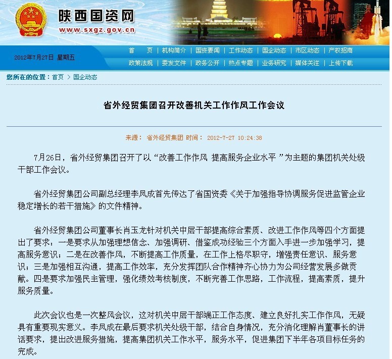 省国资委网站登载:省外经贸集团召开改善机关工作作风工作会议