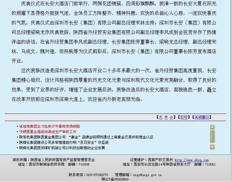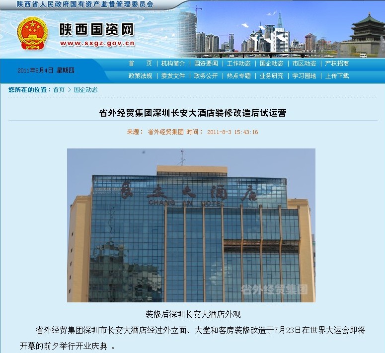 省国资网站登载我集团深圳长安大酒店装修后试运营报道