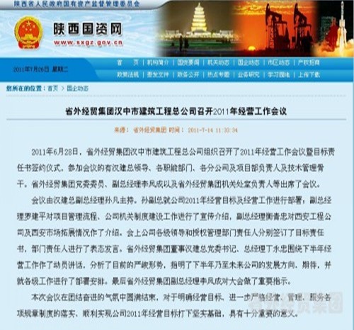 省国资委网站登载集团汉中市建筑工程总公司召开2011经营工作会议