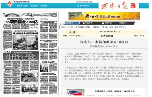 4月9日西安日报报道集团公司承办“中国陕西-日本、新加坡经济技术合作项目对接会”会议情况