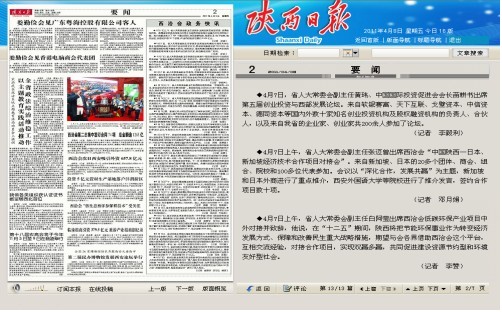4月8日陕西日报报道集团公司承办“中国陕西-日本、新加坡经济技术合作项目对接会”会议情况