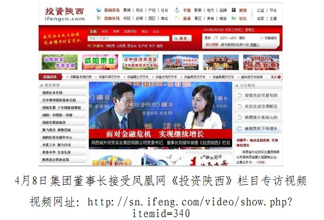 4月15日凤凰网站《投资陕西》栏目登载集团公司董事长刘耀华接受采访视频