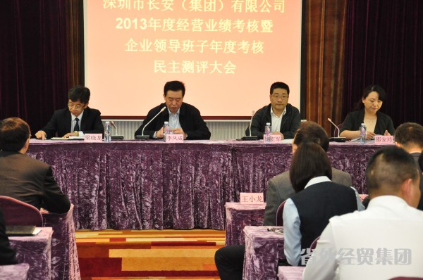 4月3日下午,集团公司开展对所属深圳市长安(集团)有限公司2013年度经营业绩考核工作。集团副总经理李凤成、副总经理惠宏军及集团考核组成员一行参加考评大会。长安公司领导班子成员和部门负责人及职工代表参加了考评大会。
