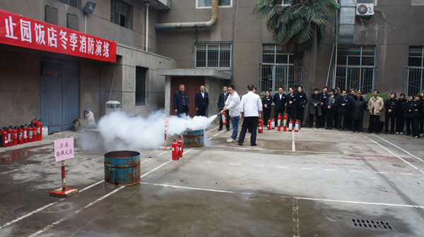 为进一步增强饭店员工的消防安全意识,切实加强饭店消防安全管理工作,落实消防安全防范措施,消除火灾隐患,根据本年度工作计划的安排,止园饭店于2014年11月27日下午,组织饭店全体员工,进行了一次消防灭火演练。保卫部同志给大家讲解了灭火器的种类,如何正确使用灭火器和消火栓,怎样对初起火灾和油锅着火的扑救等灭火常识。随后全体员工进行了模拟火灾的灭火演练。随着现场着火点的点燃,各部门员工依次分组进行操作,灭火器喷出的一股股白色喷雾大火瞬间熄灭。整个演练迅速、安全、有序。