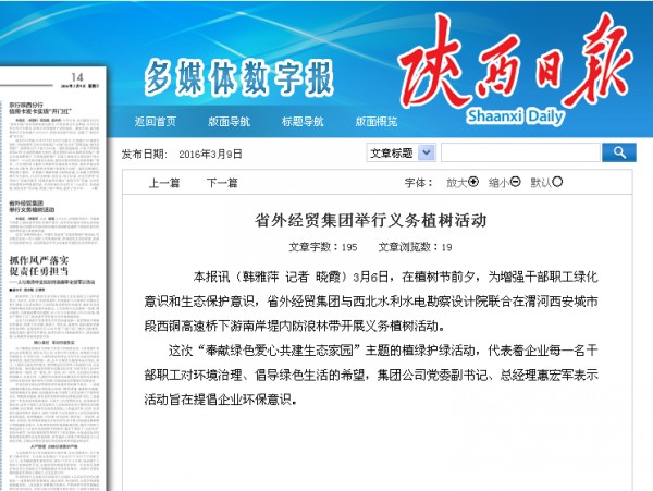 陕西日报刊登---省外经贸集团举行义务植树活动