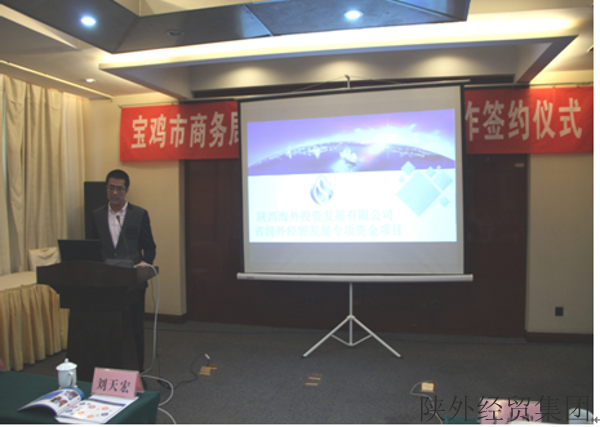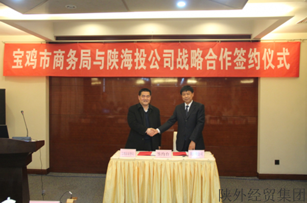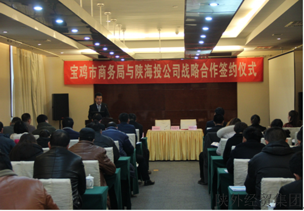 签约仪式由宝鸡市商务局对外贸易管理科王衍奇科长主持,宝鸡市商务局局长刘天宏与陕海投公司董事长丁永忠签署了战略合作协议,宝鸡市商务局副局长巨绪昌发表了热情洋溢的致辞,对陕海投公司在省级外经贸专项资金“拨改投”业务中对宝鸡外经贸企业的支持给予充分肯定,前期双方也经过了多次的沟通洽谈,才促成了本次签约仪式的成功举行,同时也表示签约只是一个开始,今后将会组织更加频繁的对接会,将所辖区域内的外经贸企业组织到一起,进行针对性的培训,助力企业解决“走出去”及融资渠道等问题。