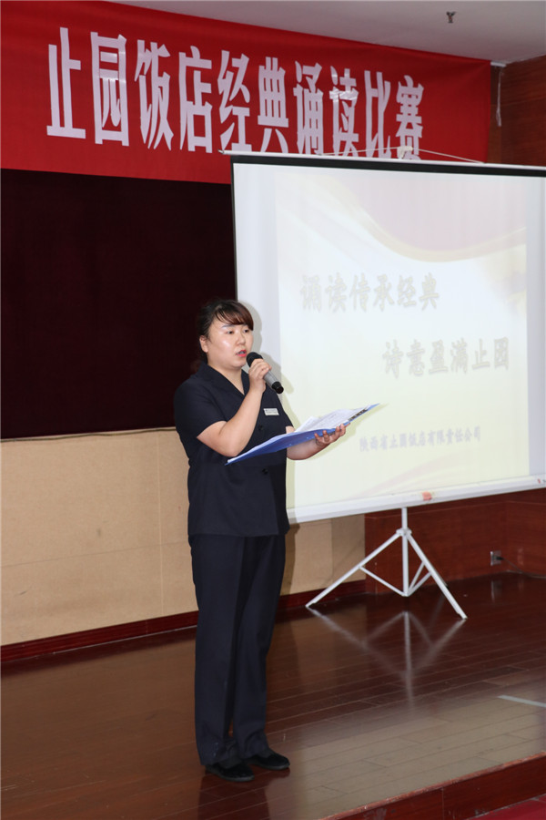 为弘扬祖国优秀的传统文化,在诵读中获得经典诗文的熏陶和修养,提高员工阅读古诗文经典的兴趣,提升文化和道德修养,止园饭店于6月8日下午举行了一场以“诵读传承经典诗意盈满止园”为主题的经典诵读比赛。