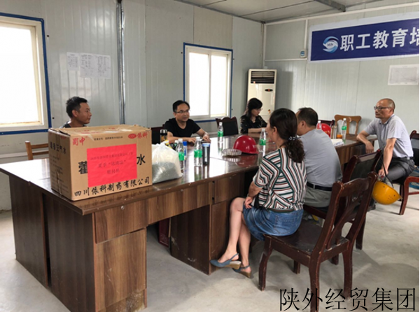 慰问组对公司所有在建项目西安片区金堆城项目、三原县高新区水务一体化项目、韩城芝川城改造项目、西安城墙项目、永寿加气分输合成建站项目等项目部和汉中片区汉变新世界(一期)工程项目、市中心医院妇幼综合楼改造项目、南郑区龙岗石器五路建设项目、花溪时光1、2#楼项目、丰辉龙亭园项目、双维家园项目、市人民医院一期扩建工程项目、城固桔园卫生院项目等项目部以及汉混公司、晗瑞公司(宁强分公司项目工程)两家子公司送上荷藿香正气水、绿豆,白糖等防暑降温用品,把泰烜建设公司党政工的关怀送到坚守在高温下工作的一线员工、工友们心中。