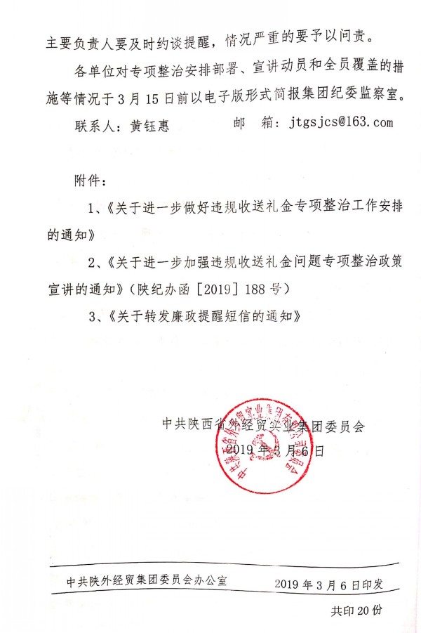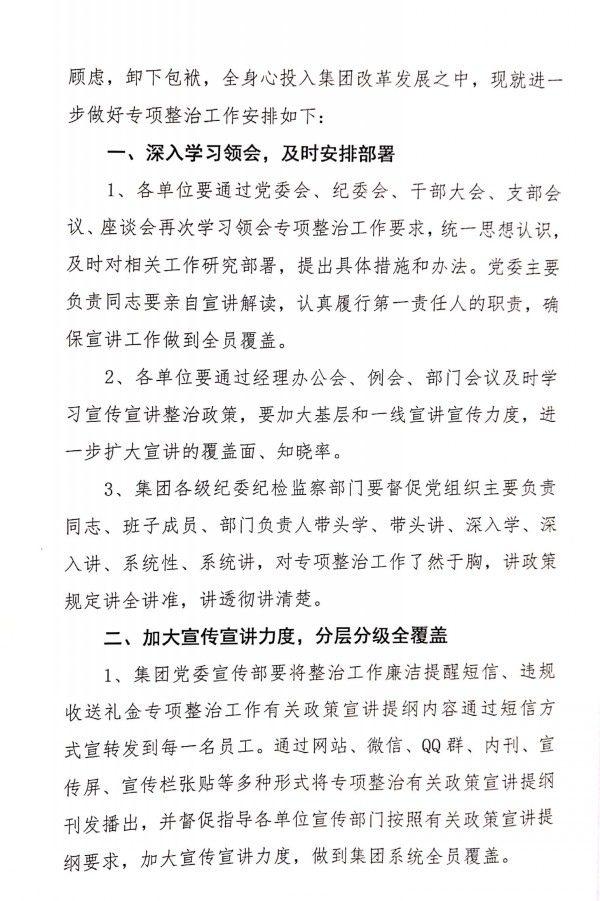 关于进一步做好违规收送礼金专项整治工作安排的通知
