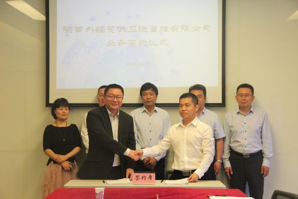 5月21日上午,陕西外经贸供应链管理有限公司(以下简称“供应链公司”)分别与深圳市小欧工品电子商务有限公司(以下简称“小欧公司”)、深圳市领先锋实业有限公司(以下简称“领先锋公司”)和安徽精怡科学仪器科技有限公司进行业务签约仪式,仪式在陕海投公司一楼会议室隆重举行。陕海投公司党委书记、董事长丁永忠,陕海投公司总经理刘军,陕海投公司党委副书记、副总经理杨浩,凯誉公司董事长牟俊松,陕海投公司国际事业部部长冯晓旭、金融市场部部长娄旻参加会议并出席签约仪式。供应链公司总经理柳新华与小欧公司执行董事李亮亮、领先锋公司总裁林棉炜、精怡公司总经理赵峰进行业务合作签约。