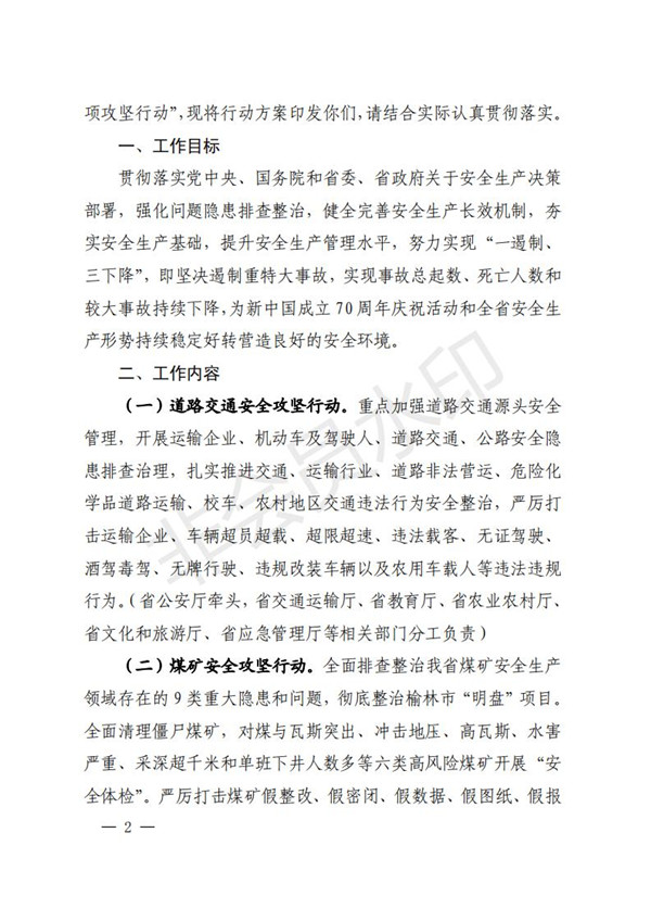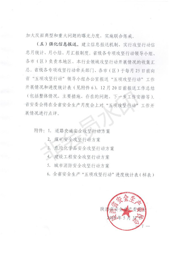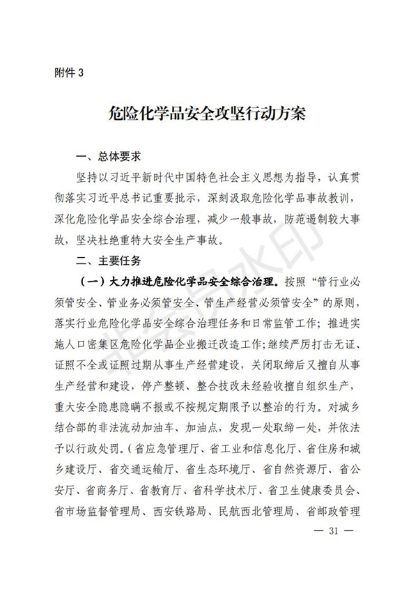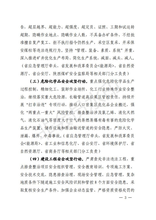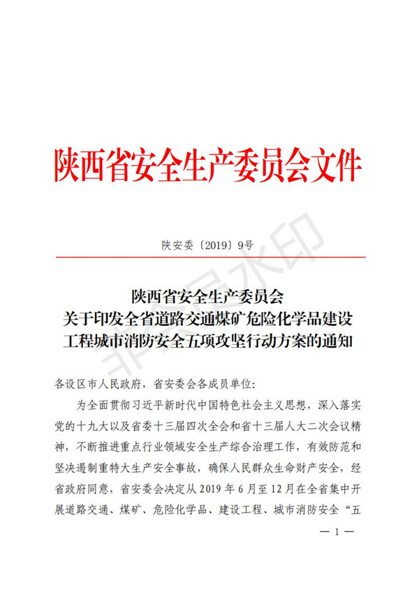 陕西省安全生产委员会关于印发全省道路交通煤矿危险化学品建设工程城市消防安全五项攻坚行动方案的通知