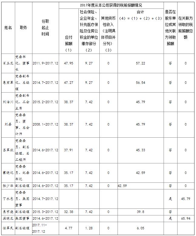 1.上表披露薪酬为我公司负责人2017年度全部应发税前薪酬,按国家规定由单位缴存各种社会保险等。其中,第1项由省国资委核定。